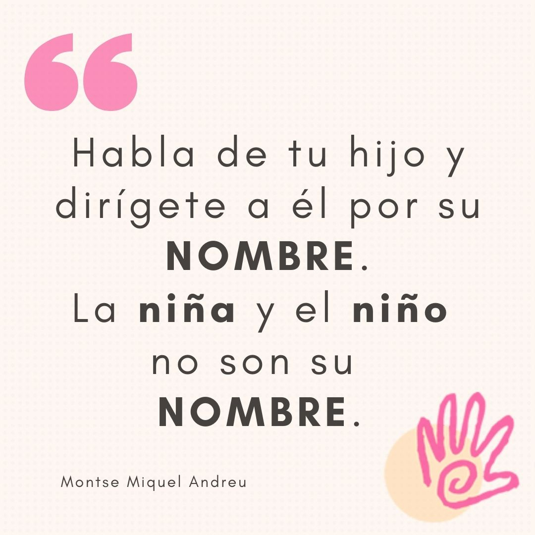 Tu hijo / hija es un niño o una niña (nombre común) pero, como tú sabes muy bien, es único e irrepetible, por tanto, potencia su particularidad y singularidad pronunciando, con todo el amor, su NOMBRE.